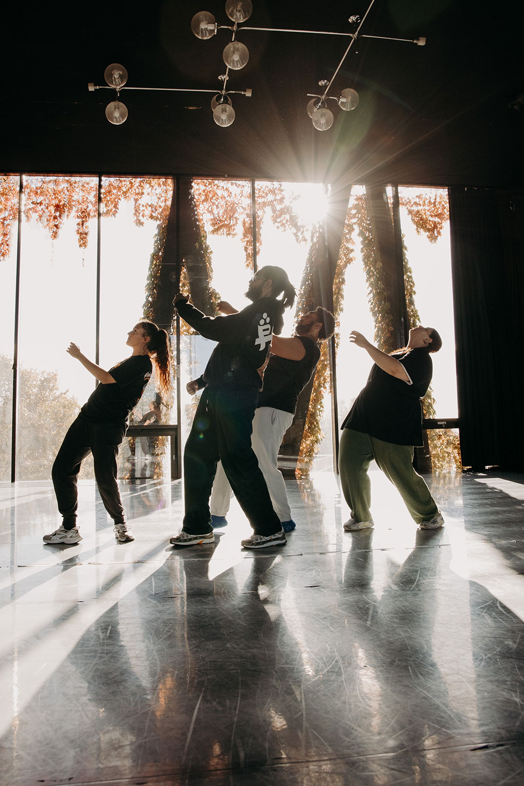 Dans cette pièce, Miguel Nosibor prend le rôle de chorégraphe et questionne avec son équipe de 5 danseurs leurs conditions de métamorphes.